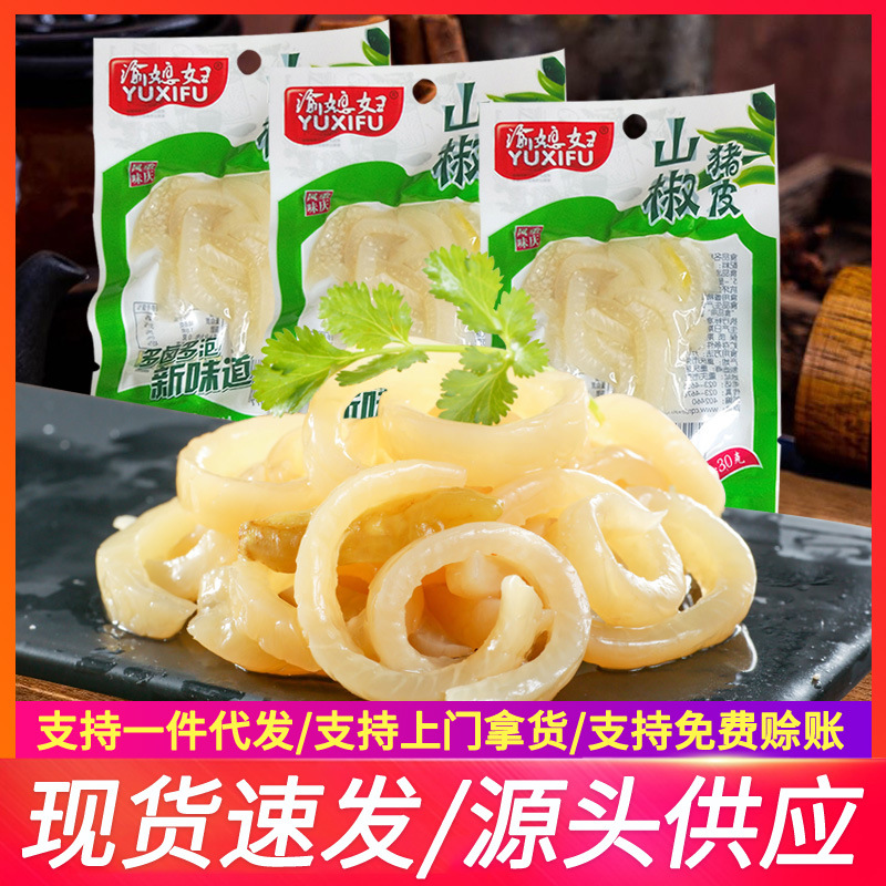 重慶産山椒豚皮30g袋入り、重慶風泡椒味酸辣水晶肉皮、小包装スナック、卸売