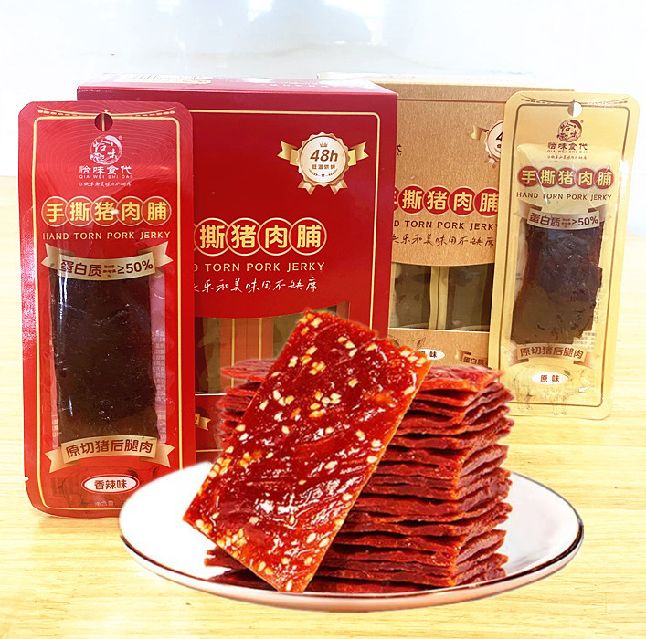 神農公社の豚肉の干し肉靖江第二食品工場の手は元の味を引き裂きます。
