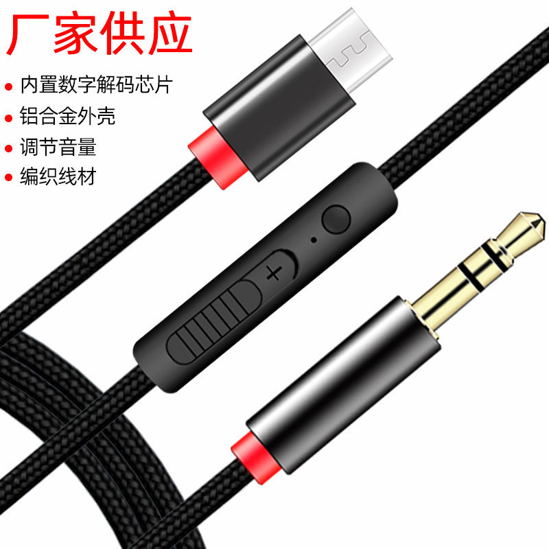 Type-cマイク付きオーディオケーブル3.5mm調整可能な音量携帯電話ヘッドセット車載オーディオスピーカーauxケーブル