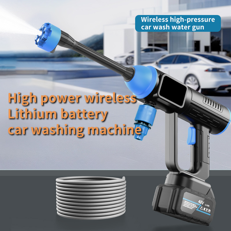 クロスボーダー携帯型無線リチウム電気洗車機高圧家庭用充電可能大電力電動水鉄砲連発