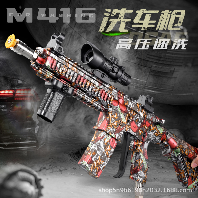 国境を越えた新型ネット赤模擬自動車高圧水鉄砲M416携帯型自動車店専用増圧スプレーガンメーカー