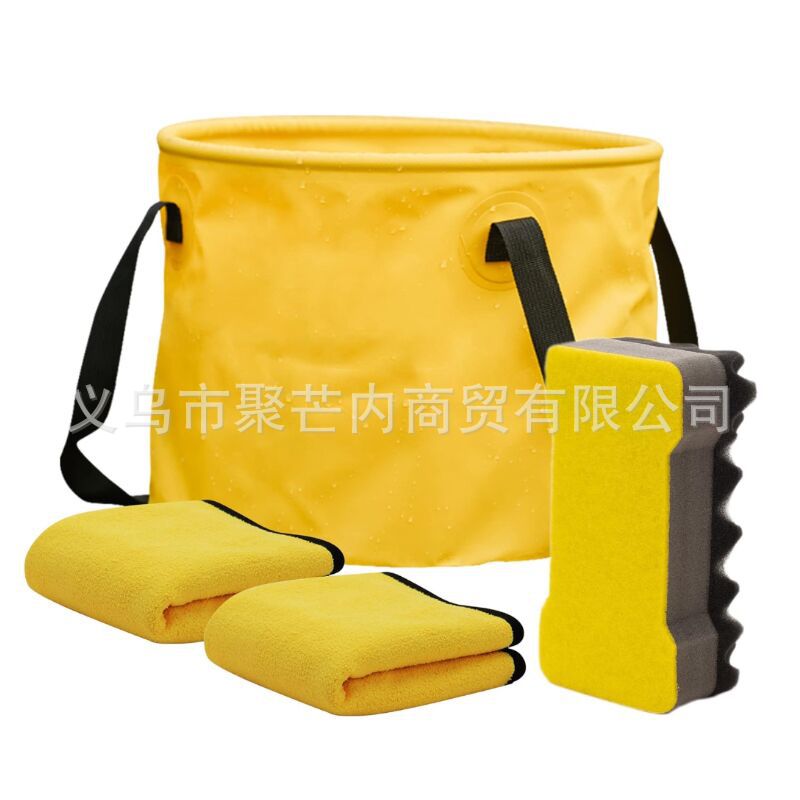 国境を越えた新型人気4点セット黄色洗車セット20l折り畳み可能バケツ洗車スポンジ洗車ツール