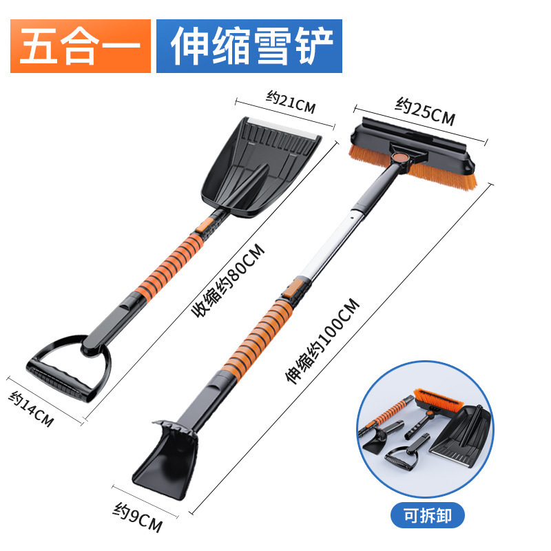 自動車五合一除雪シャベル取り外し可能な雪かきシャベル車載用ガラス伸縮除氷シャベル冬の雪かき