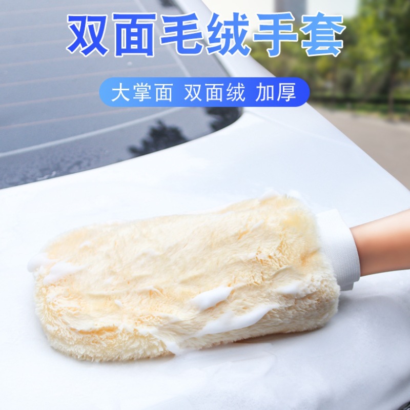 洗車手袋、ウールベルベット車拭き手袋、車両両面クマの手厚みのある特殊雑巾、手拭きツール