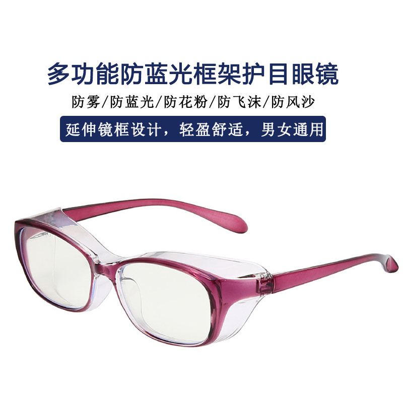 ゴーグル新型レトロ防曇ブルーレイメガネ防塵飛沫カバーサイド角型フレーム花粉防止メガネ