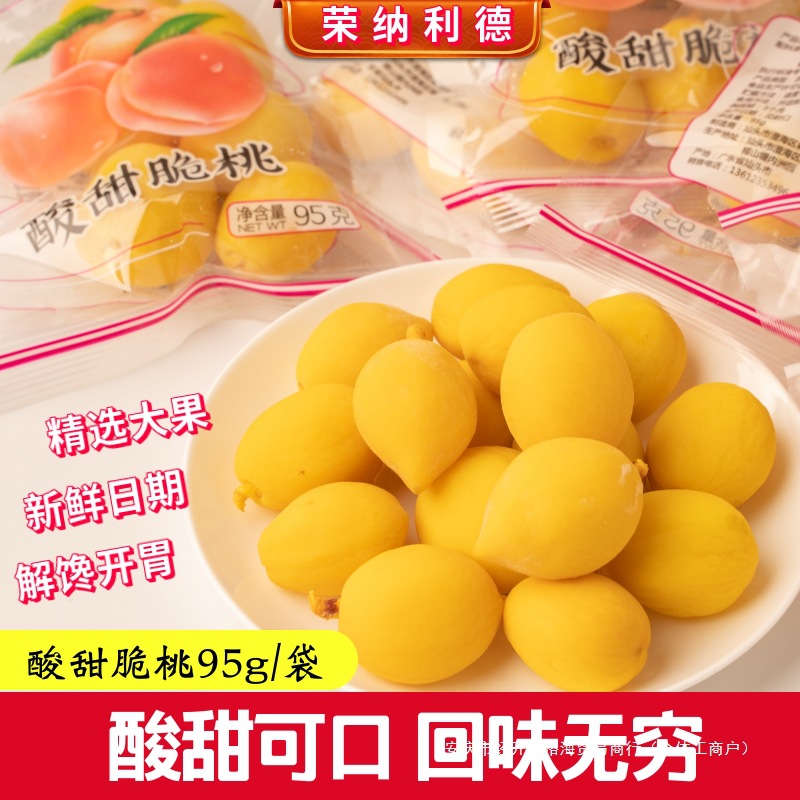 栄納利徳は甘酸っぱくて脆い桃の95gの大きい袋の子供の頃の水蜜桃の黄色の桃の砂糖漬けの果物の砂糖漬けの砂糖漬けの砂糖漬けの砂糖漬けの食欲を解消します。