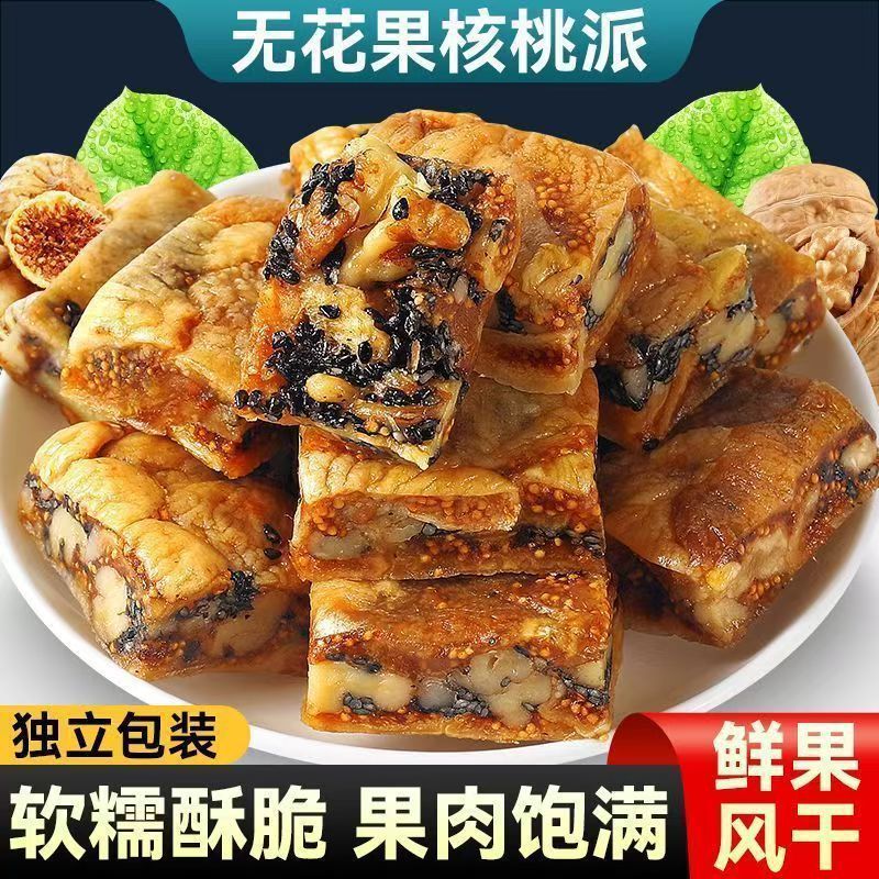 イチジク入りくるみパイ、黒ごまソフトケーキ、独立した小包装、大きなイチジクとくるみのスナックの即時発送