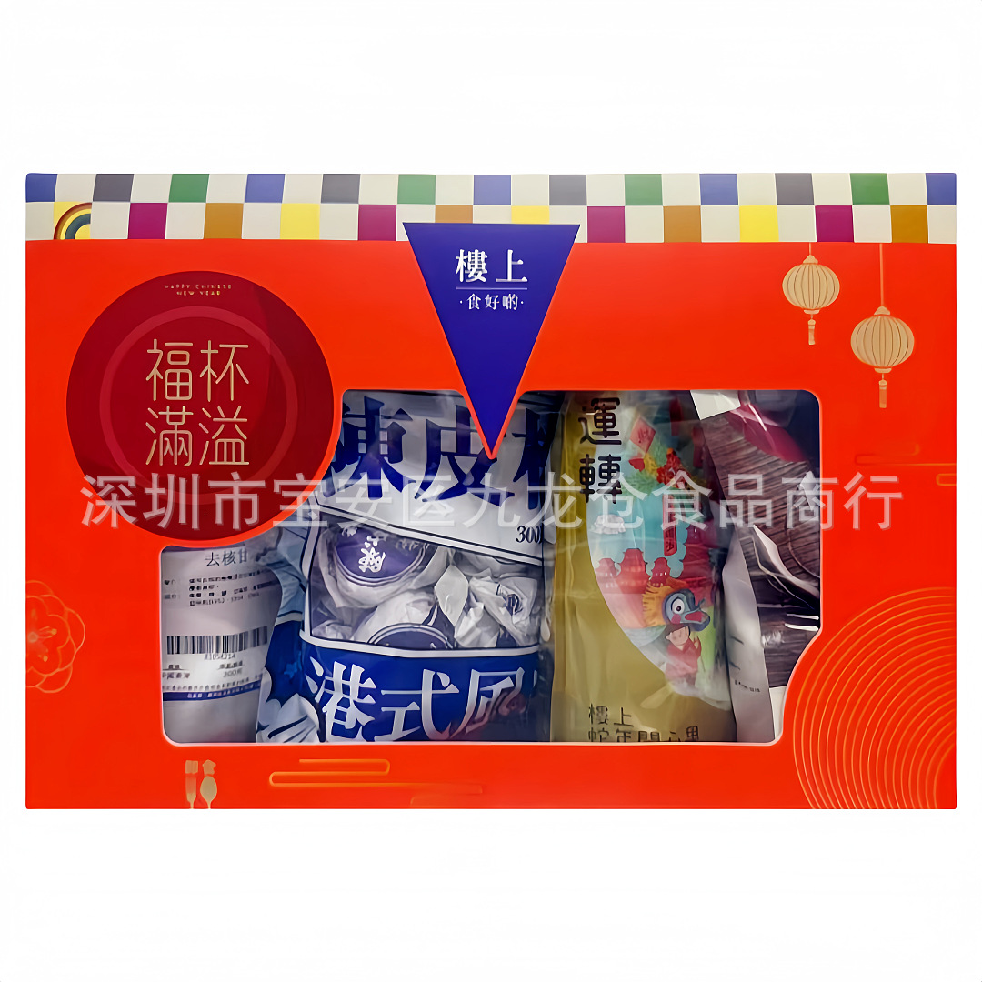 卸売り香港輸入階上金龍呈祥セット新年礼箱年品開心果腰果ブルーベリーマンゴー乾燥