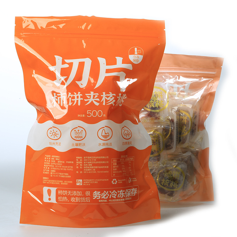 大綿さんの富平柿餅はピーチの実を挟んでクルミの餅を巻いてクルミの餅のスライスの間食を単独で500グラム詰めます。