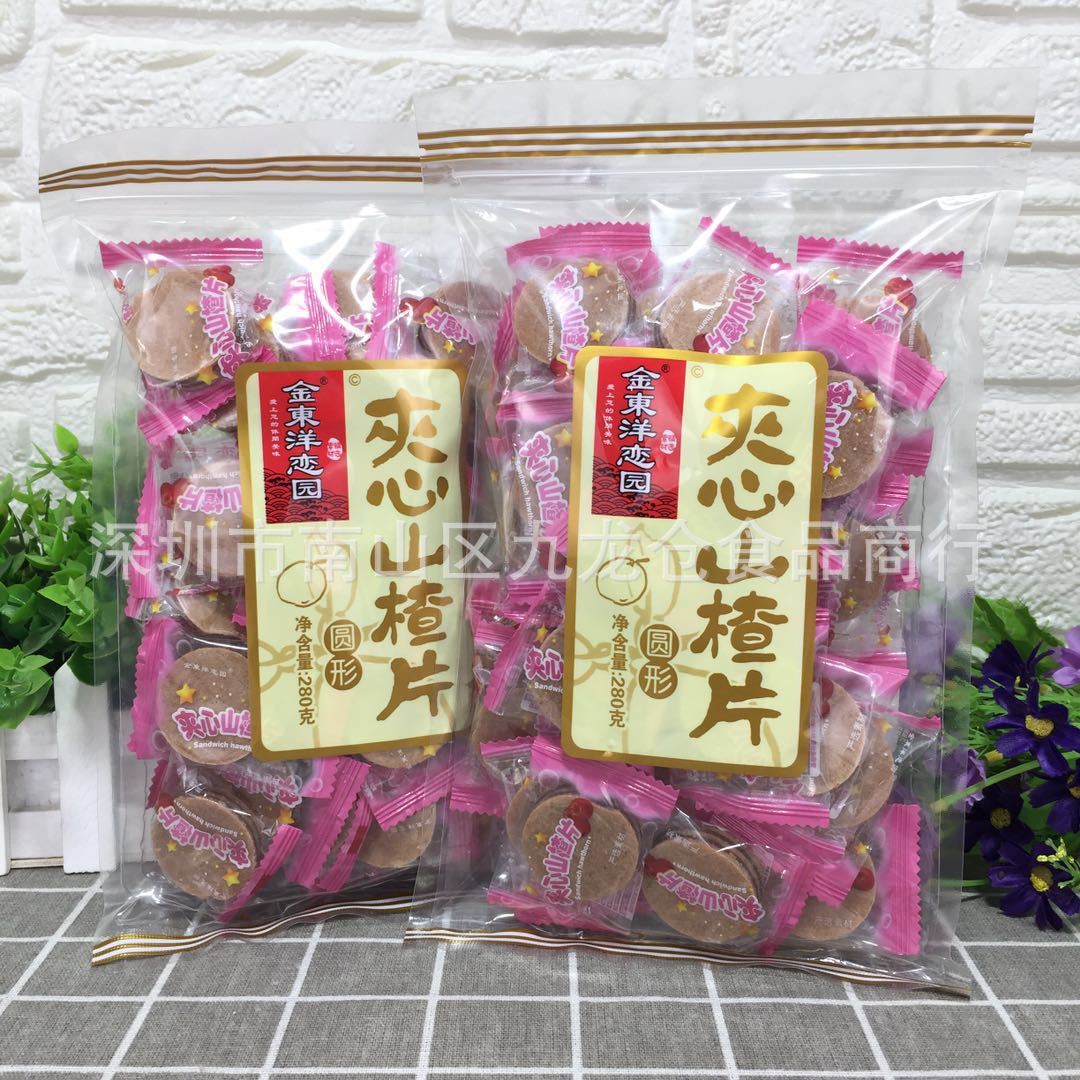 卸売り金東洋恋園サンドイッチサンザシ片円形インスタント砂糖漬けレジャースナック品280g 1箱30袋