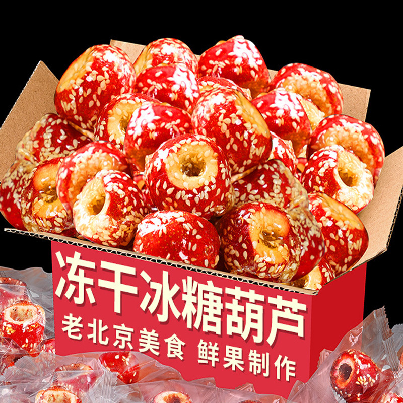 古い北京の砂糖漬けの果物、個別にパッケージ化されたフリーズドライの砂糖漬けの果物、サンザシボール、卸売全箱、種のない中空の山のボール
