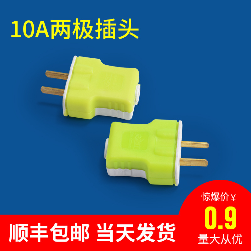 Led足平電源プラグ配線グリーンt型銅単相二極プラグ連体銅固定ゴム落下防止