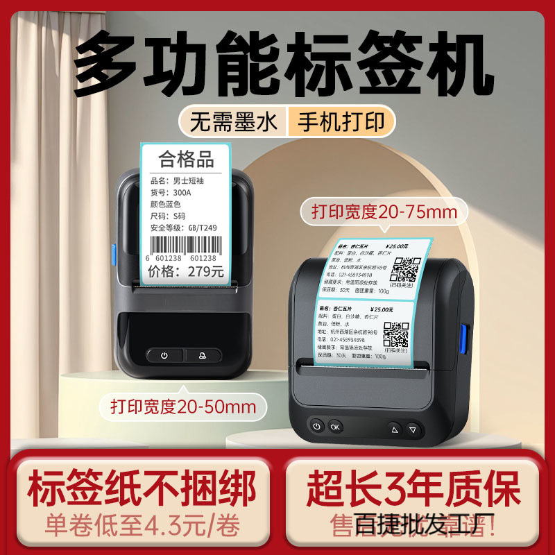 感熱ラベルプリンター Bluetooth バーコードラベルプリンター ハンドヘルド家庭用小型証明書価格コーディングマシン