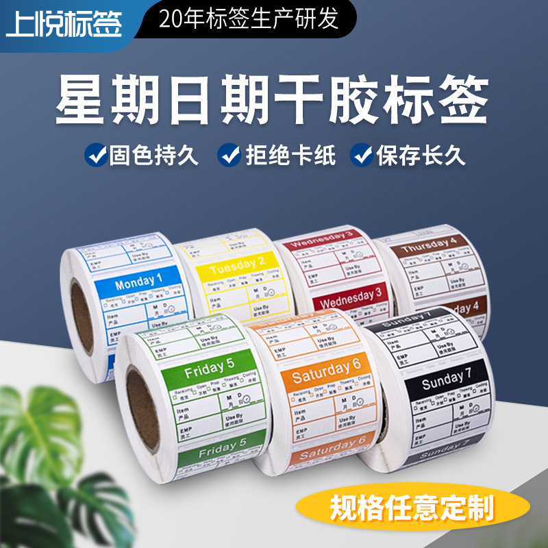 オフセット可能な週ラベル紙食品サンプルラベル飲食キッチン食品シール日時ラベル