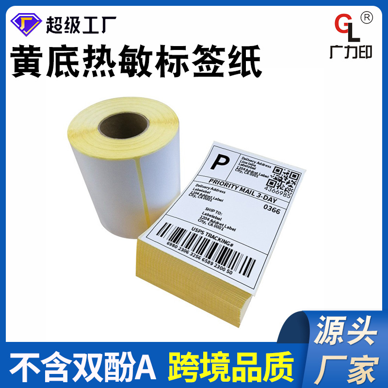 三防黄底感熱ラベル紙58*40不乾性印刷紙クロスボーダー黄底ラベル印刷紙感熱紙