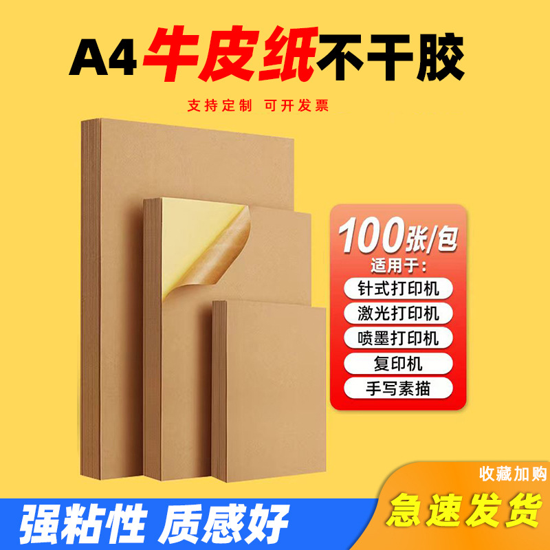 クラフト紙粘着ラベルシールA4 100枚ラベルシールレーザーインクジェットプリント紙貼付商標シール