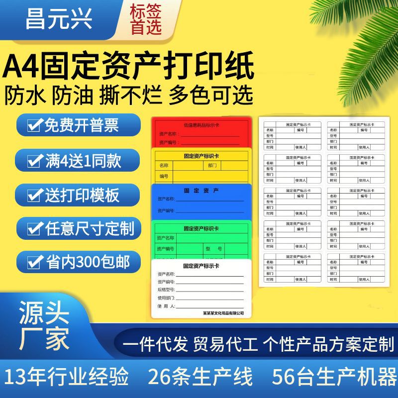 10枚の固定資産ラベル、グリッドラベル、耐候性ラベル印刷用紙、A4粘着ステッカー印刷用紙