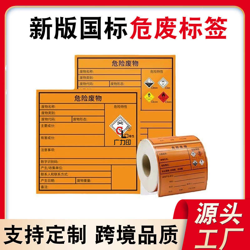 2024新版国標危険廃棄ラベル紙危険感熱合成紙はオレンジ色の不乾性印刷紙のシールを引き裂かない