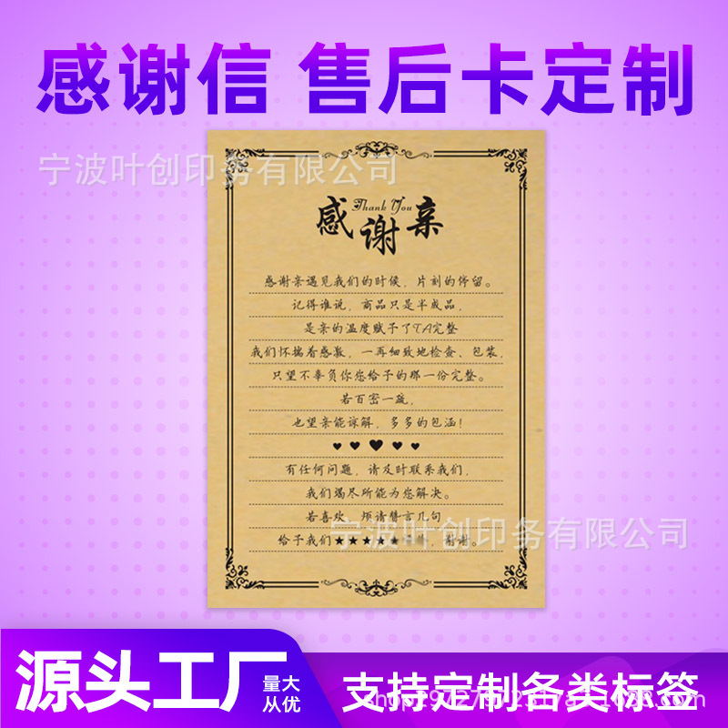 感謝状アフターサービスカードシンプルレトロ印刷電気商暖かい暖かいヒントクラフト紙ラベルアフターサービスカード
