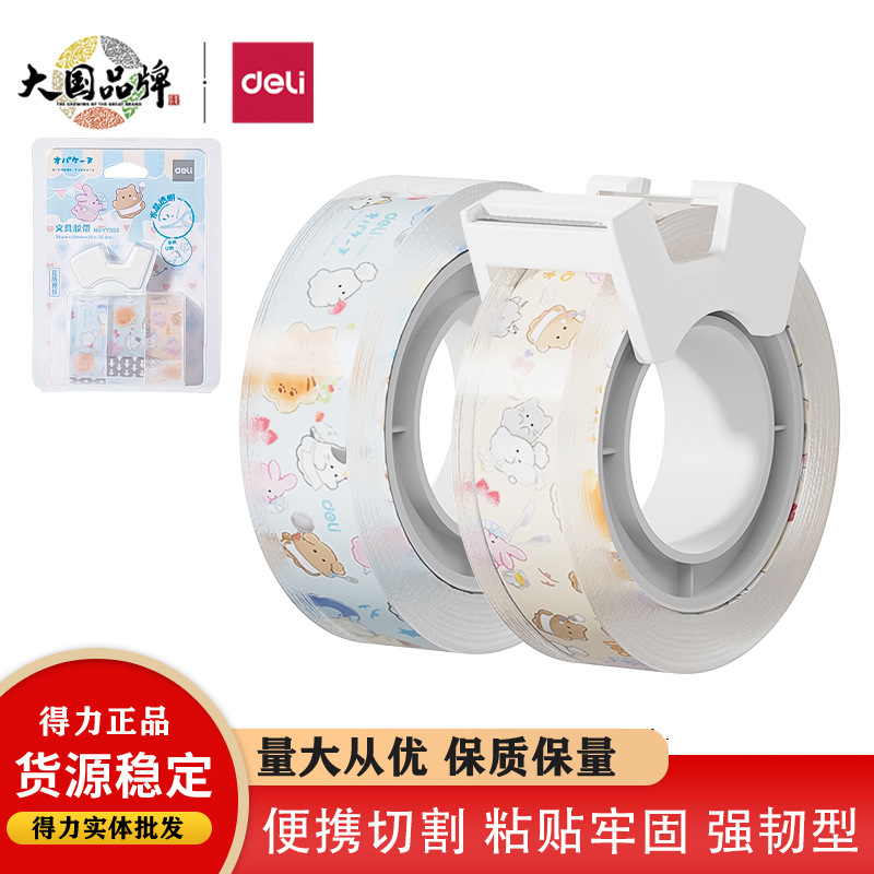 デリ YY555 Youyou 文具テープ 18 ミリメートル * 20y * 38um 学生小さなテープ透明テープカッター付き