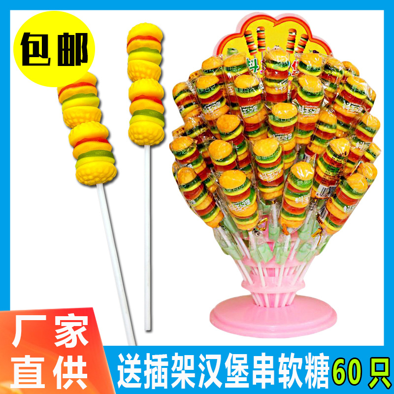 創意串焼きハンバーガーグミ子供用スナック売店卸売ロリポップ20本入りグミ