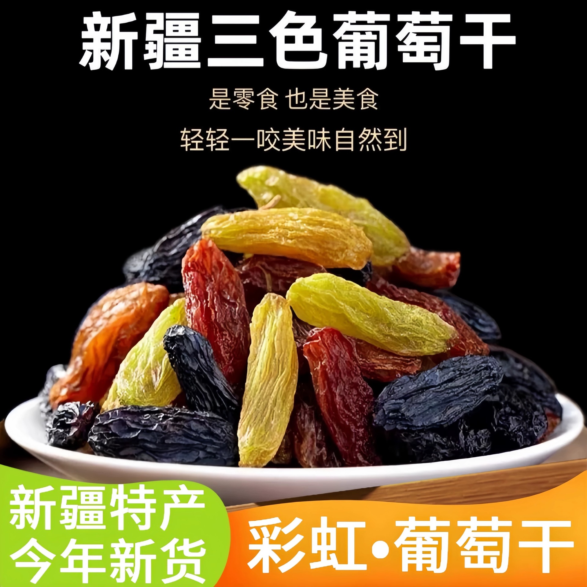 新疆三色レーズン500g大缶入り大粒即食緑香妃黒ガロン紅提果物乾燥間食