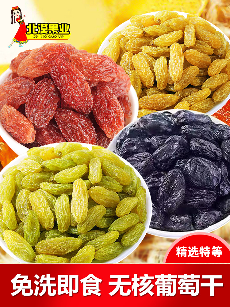 全店で3点を選んで50包の間食を送る】新疆レーズンの4色のカラフルな種のない甘いレーズン