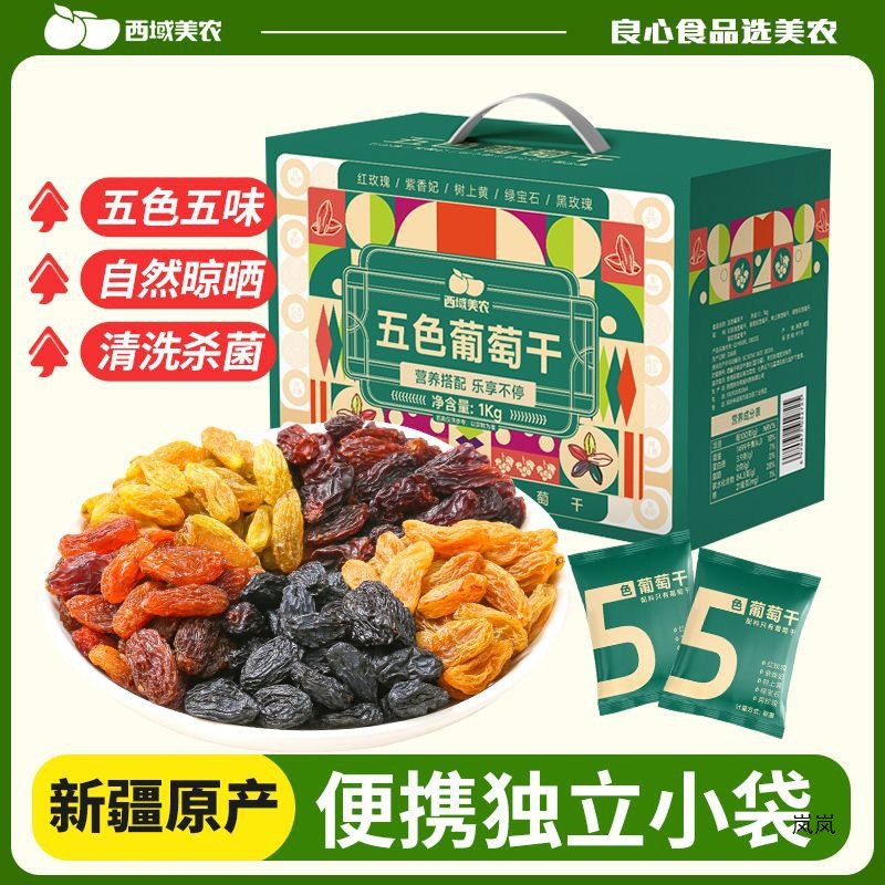 西域の米農の干しぶどうの2斤の箱は新疆産の独立して5色の組み合わせの果物を包装して間食を卸売りします。