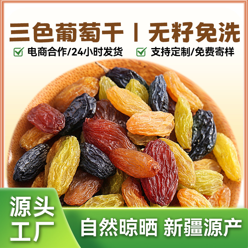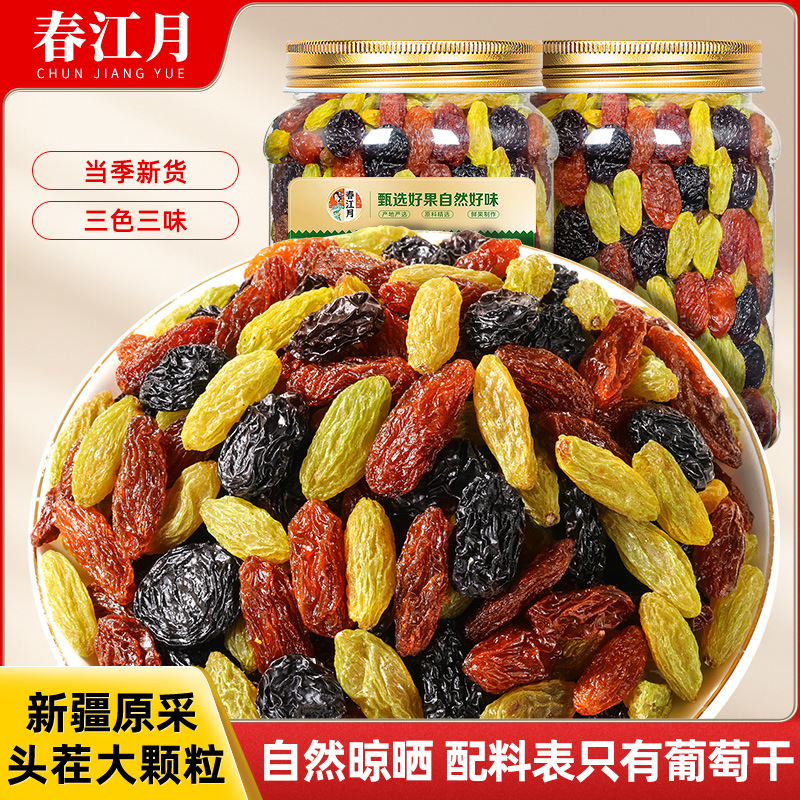 新疆三色レーズン500g大缶入り大粒即食緑香妃黒ガロン紅提果物乾燥間食