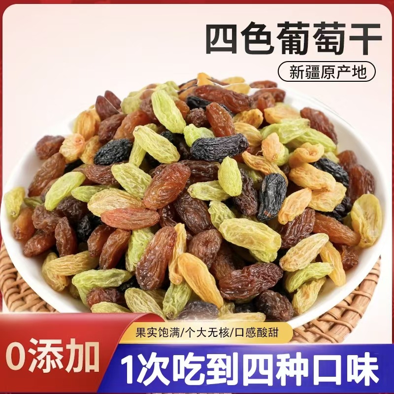新疆四色レーズン無砂果乾間食卸売り無核提子乾大粒多彩レーズン