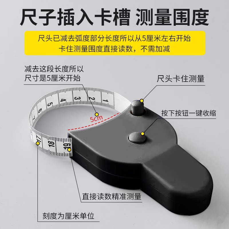 家庭用フィットネス三次元定規高精度ウエスト脚周り軟尺自動スプリングバック1.5メートルウエスト定規ミニ定規