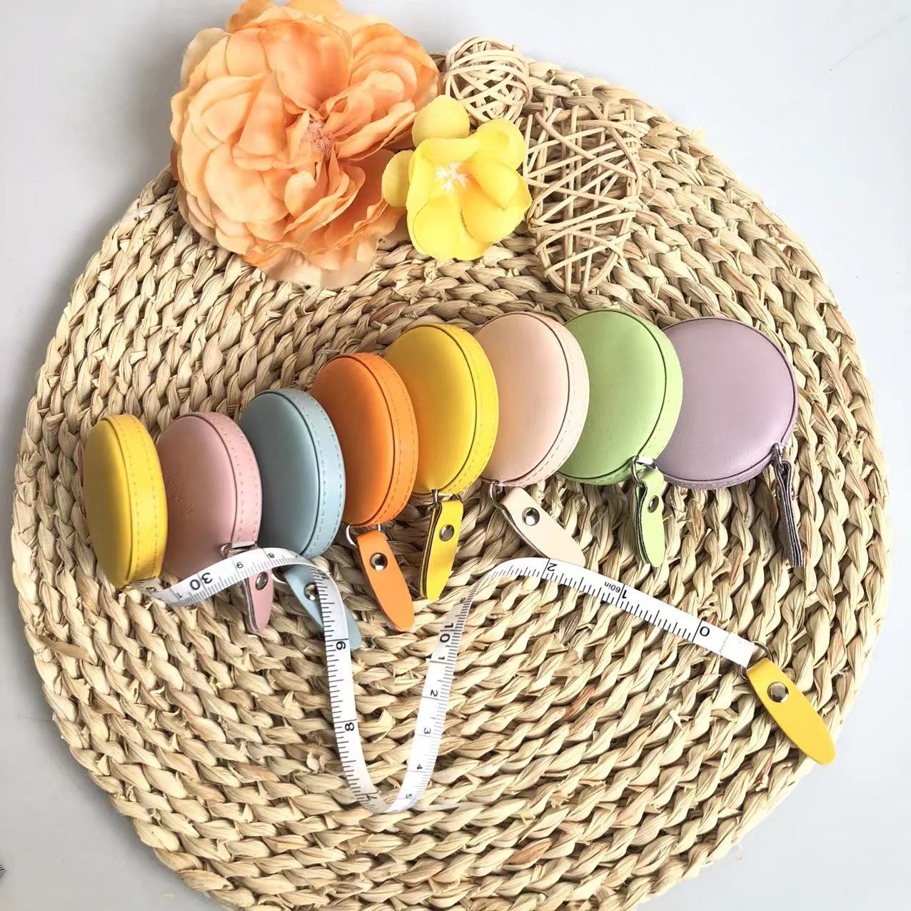 PU革円形小巻尺かわいいミニ巻尺携帯量衣尺三囲ウエスト1.5メートルpuソフト定規