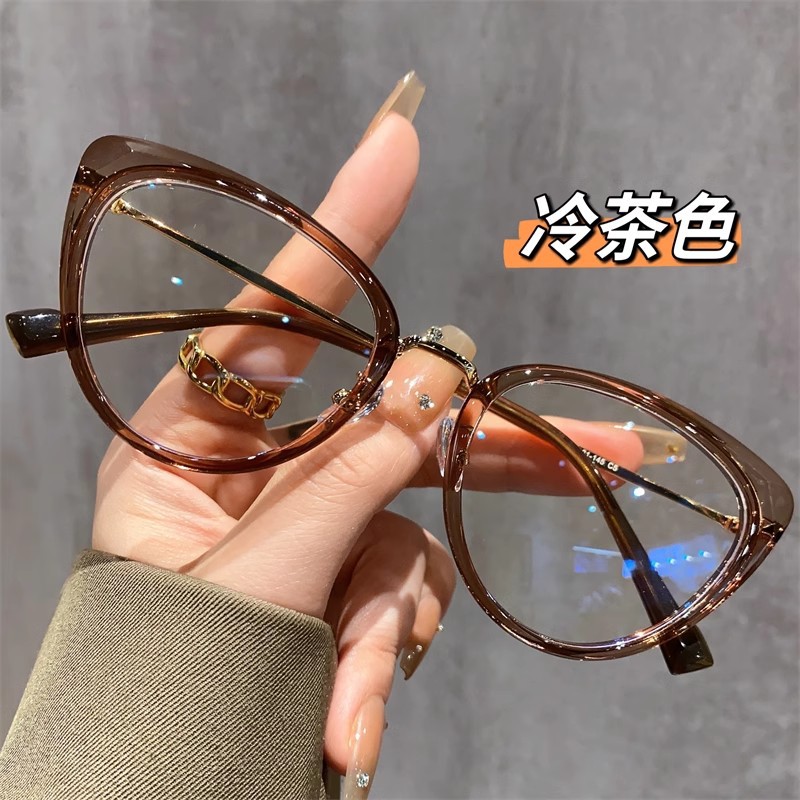 国境を越えた新型カラーフレーム猫眼平光鏡欧米ファッション砕花防止ブルーレイ素顔眼鏡