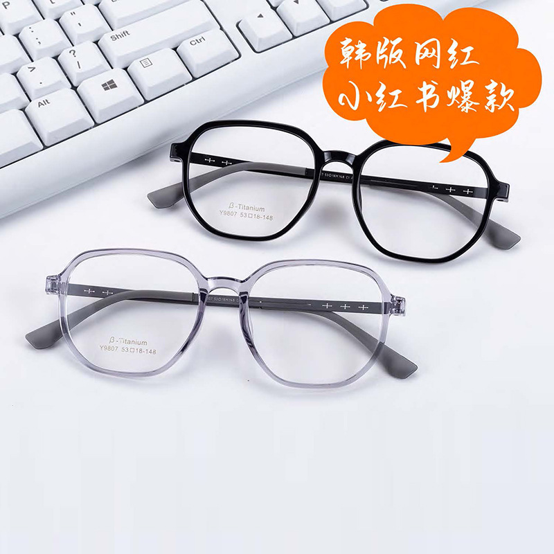 新型ネット赤多角形眼鏡枠潮流大枠ブルーレイ防止眼鏡紅書同項近視完成品卸売り