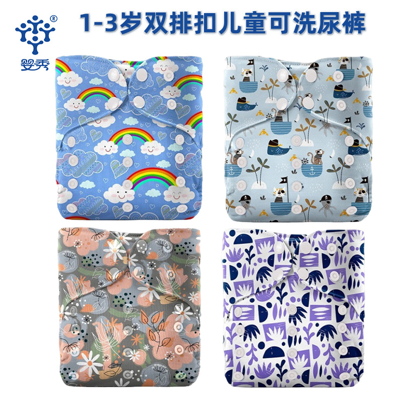 赤ちゃん布おむつ赤ちゃん洗えるプリントスナップおむつ新生児防水漏れ防止二列おむつ子供