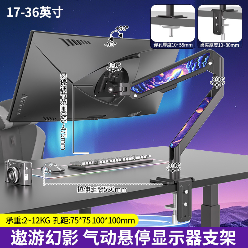 コンピュータモニタースタンドメカニカルアームデスクトップ回転スクリーンカンチレバーベースパンチフリーデュアルスクリーンデスクトップブラケット