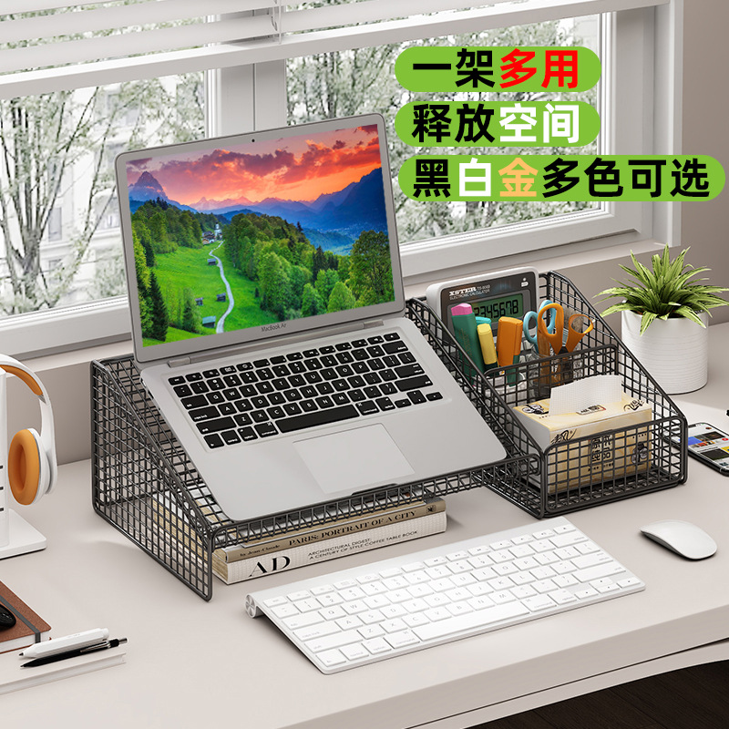 ノートブック冷却ベース高架デスク収納ラックデスクトップコンピュータモニターパッド高架棚アイアンアート
