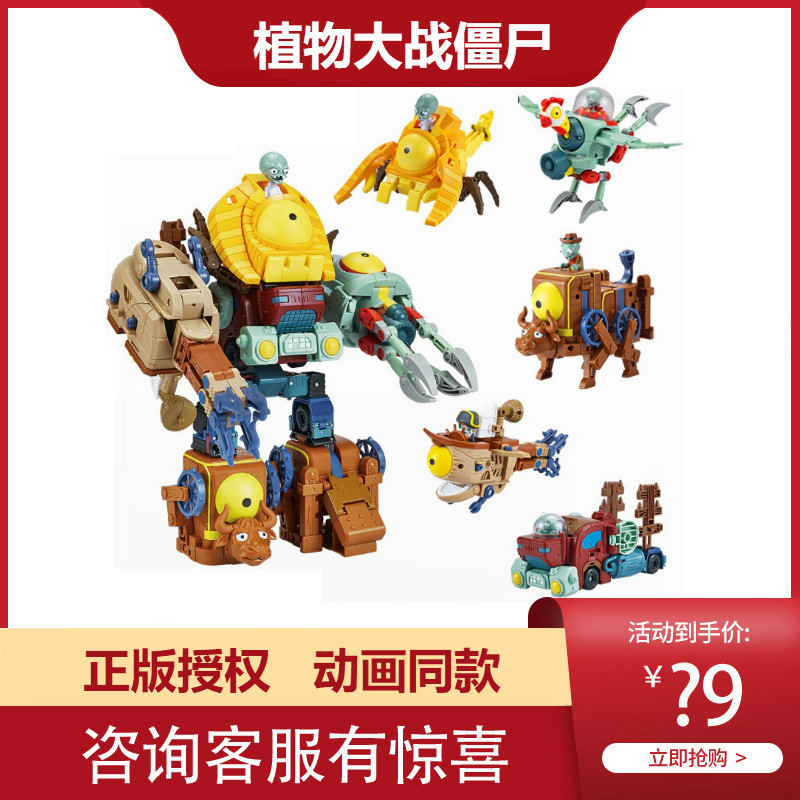 植物大戦ゾンビ玩具変形五合体大boss子供セットゾンビ鶏機甲巨人3合1