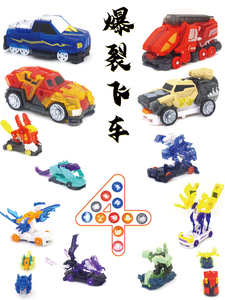 爆裂飛車4第4四半期獣神出撃傲慢天神龍稲妻神彫刻狂火雄獅子S変形玩具セット
