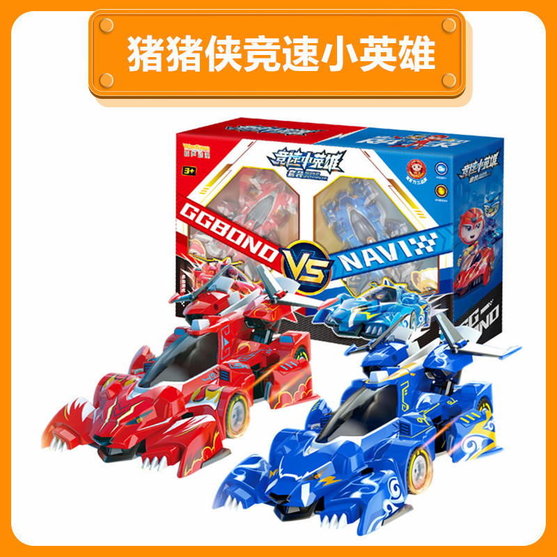 豚侠の競速小英雄変形磁気吸爆甲レース赤炎烈虎雷速音豹玩具子供男