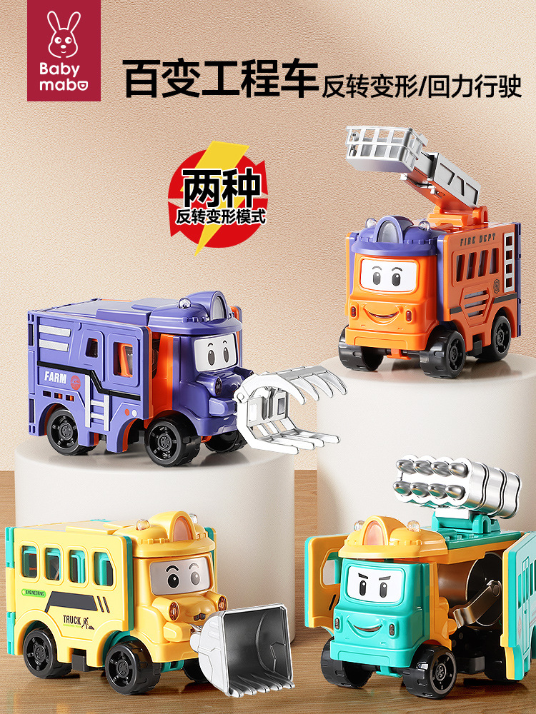 子供の変形反転車のおもちゃの男の子の漫画の学校のバスの工事の車の5百変の小さい車の4益智3-6歳2