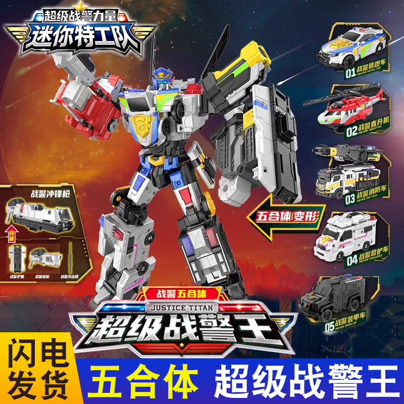 正規版ミニエージェントチーム7スーパー警官王五合体スーパーパトロール警官変形機械玩具少年