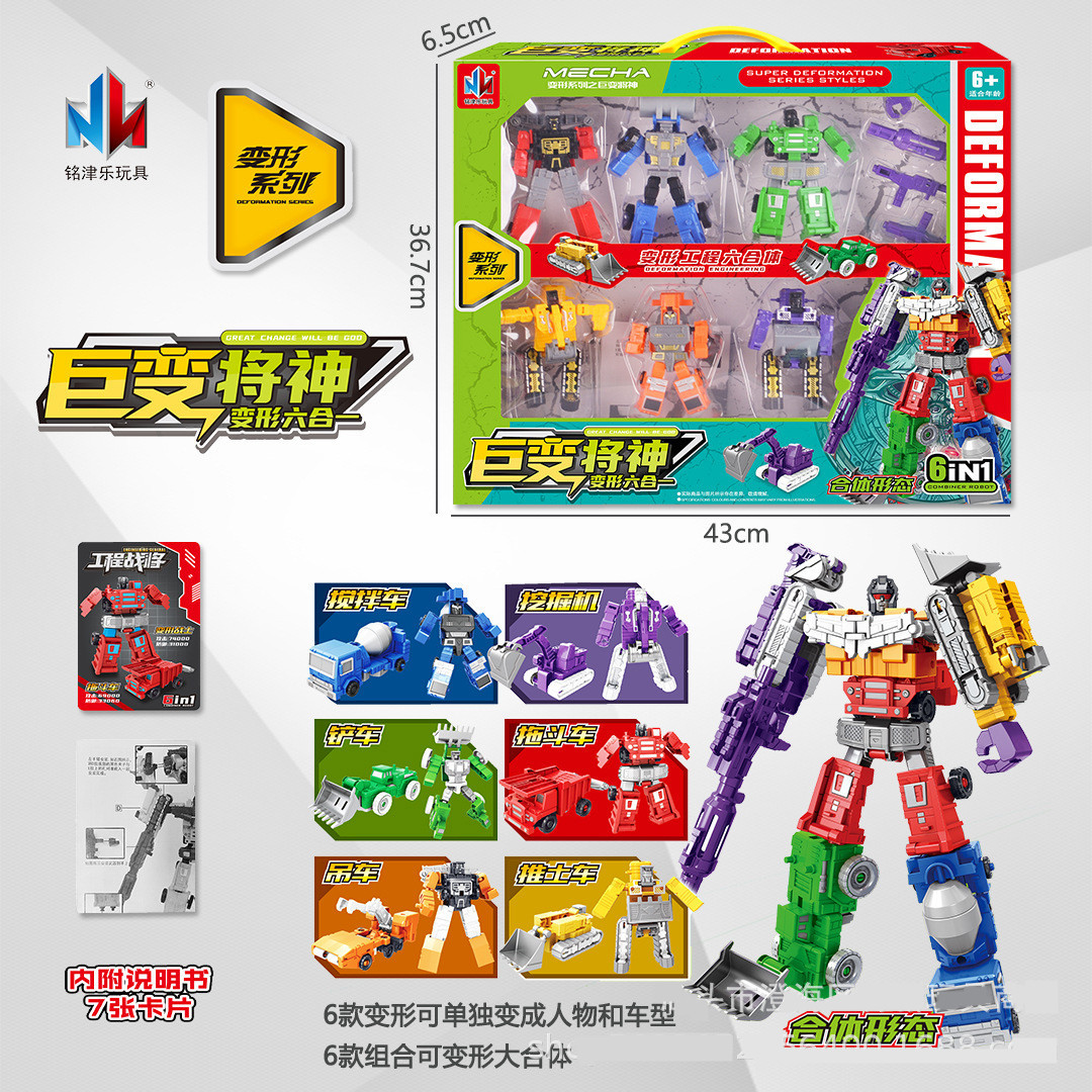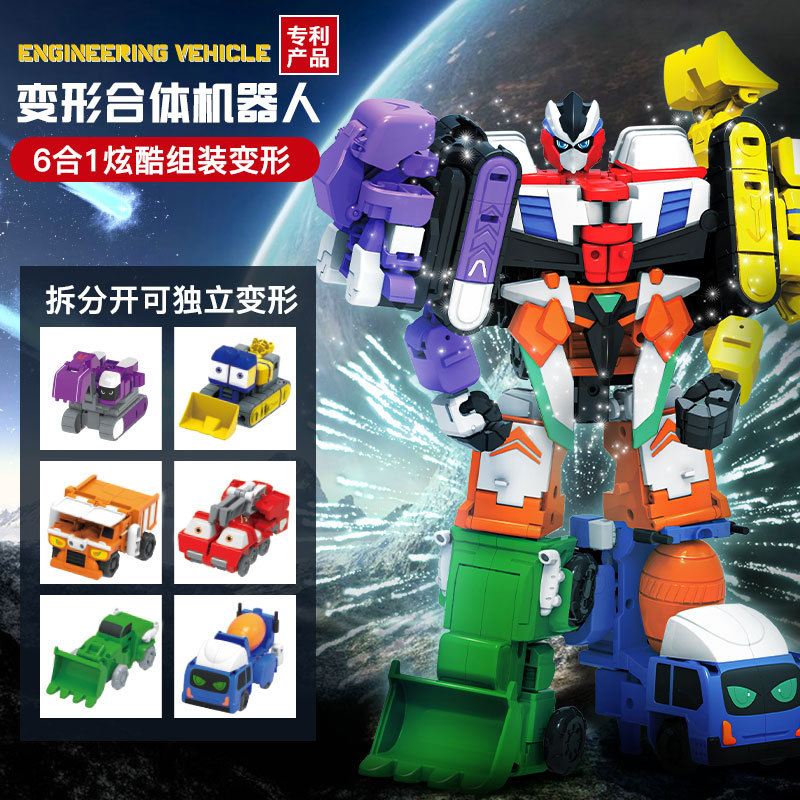 変形玩具工事車ロボット6合体自動車金剛玩具模型変身ショベル知育少年