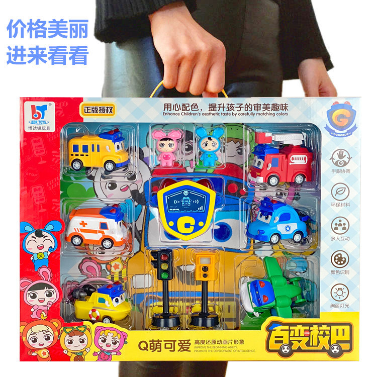 ビースト校巴玩具反転変形車セットゲーテ回力スクールバスパトカー信号灯子供プレゼント