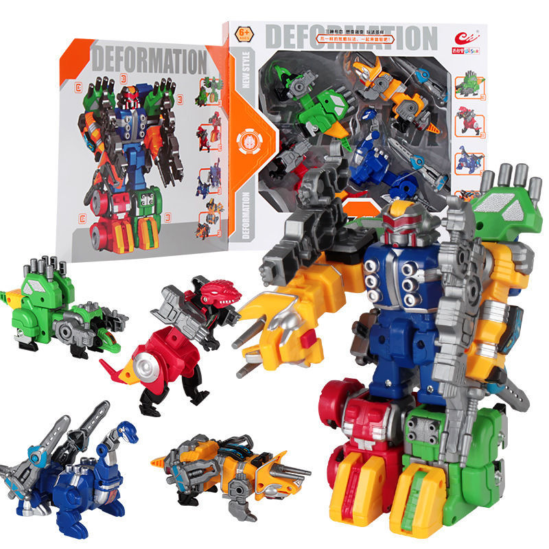 子供変形機甲恐竜4合一益智変形戦隊ロボット金剛模型暴龍セット玩具