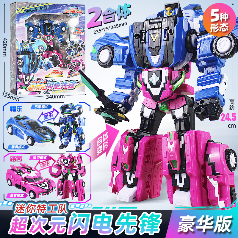 ミニエージェント超次元創造王変身ロボットおもちゃの車高級 2 フィギュアライトニングパイオニア男性