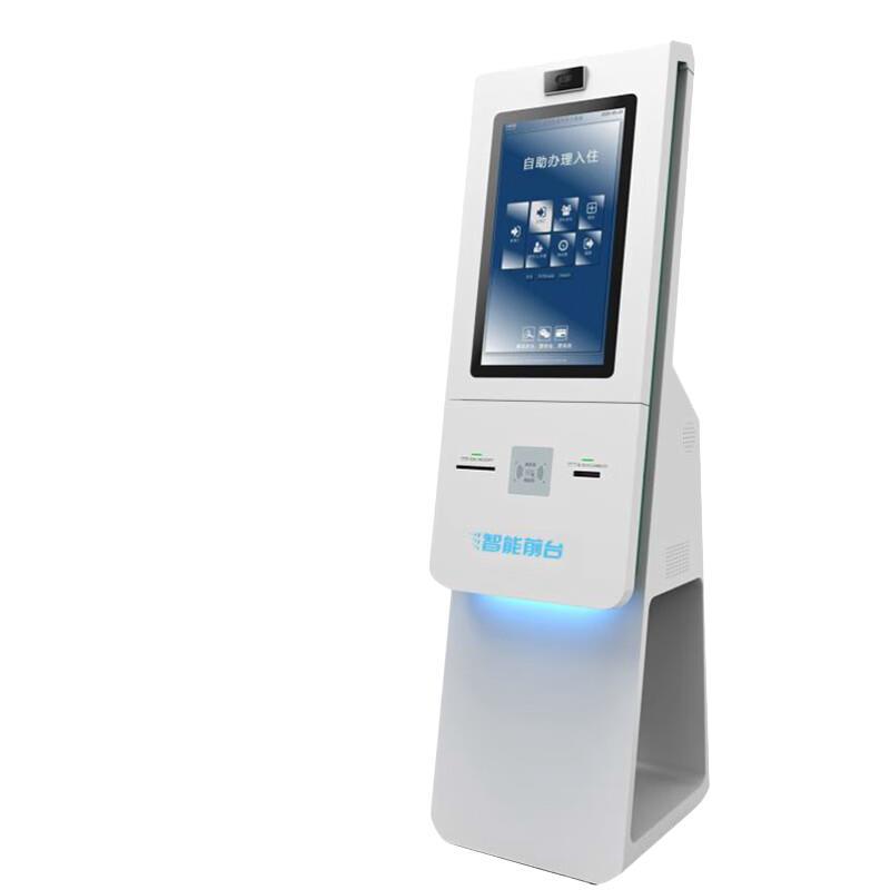 縦型ホテル自動チェックインロボット自動チェックインチェックアウト23.8インチタッチパネルブラシ身分証明書