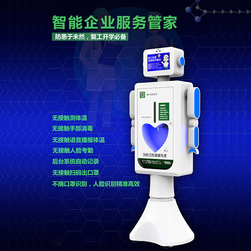 知能測温ロボット無接触測温消毒音声アナウンス顔認識勤務評定スタッフ登録