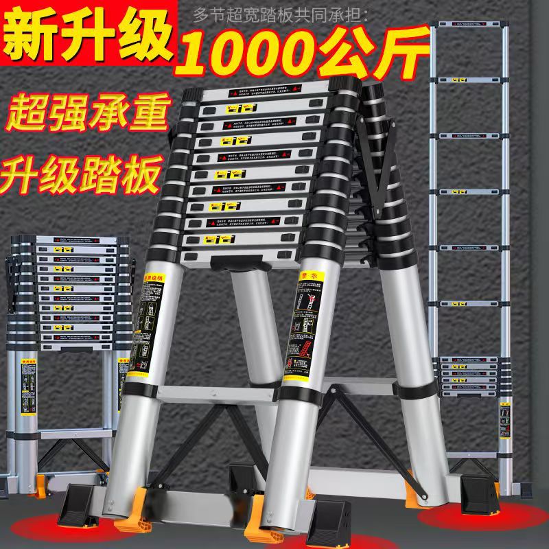 多機能はしご、家庭用伸縮式ヘリンボーンはしご、折りたたみ式、厚みのある、ポータブルアルミニウム合金昇降ストレートはしご、竹エンジニアリングはしご