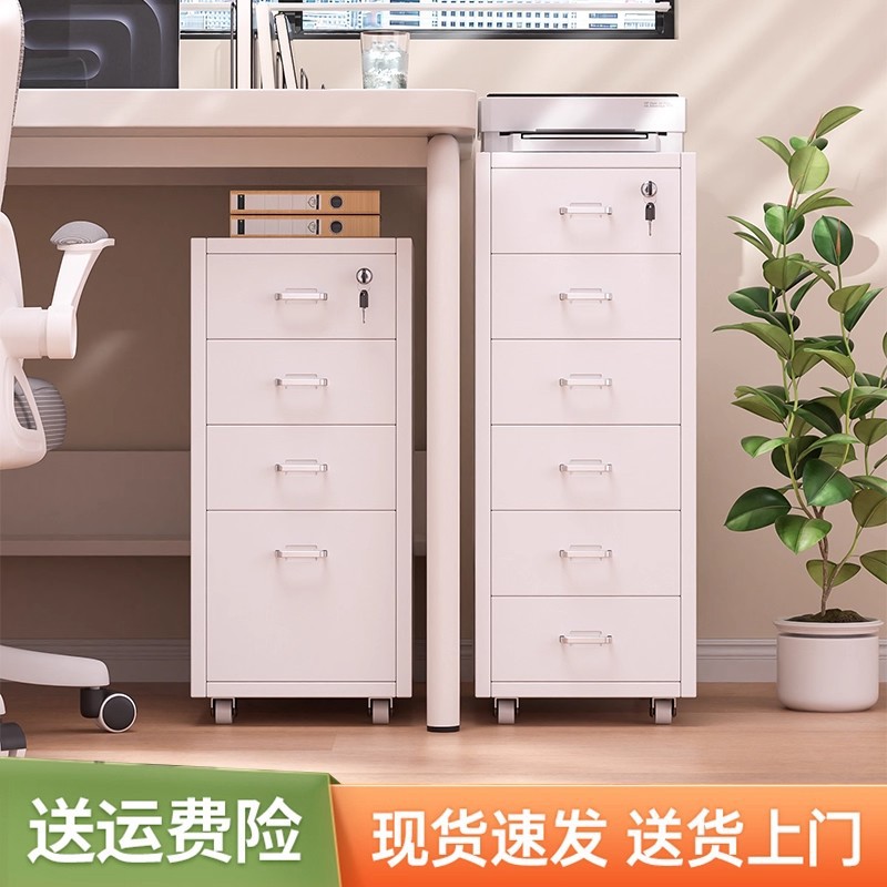 スチール製収納キャビネット 鉄製キャビネット 情報収納 収納ローキャビネット テーブル下キャビネット 移動式引き出しキャビネット ロック付き小型キャビネット